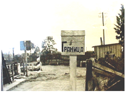 Graniza — Grenze Dieses Schild an der Westseite des Flüsschens Bug sahen die Deutschen Soldaten, die bei Krystinopol die damalige polnisch-russische Grenze überschritten. |